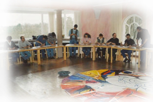 Kunst in sozialen Arbeitsfeldern Der Künstlerische Prozess als Fähigkeitsbildung Kunsttherapie mit Kindern und Jugendlichen Die Kunst der Zusammenarbeit // LeitbildentwicklungEin Leitbild lebt nur dann ...... wenn es in den Beteiligten der Organisation lebt. Der Einzelne muss seine individuellen Intentionen für sich und seine berufliche Entwicklung zum großen Teil in dem übergeordneten Leitbild wieder finden können. "Verordnete Visionen" sind das Glanzpapier nicht wert, auf dem sie gedruckt sind.